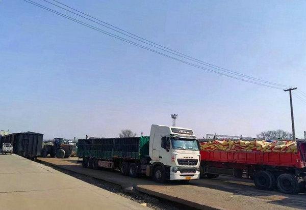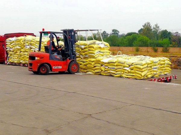 張家口宣化貨場,種地大戶訂購三環(huán)二銨150噸正在安排發(fā)運。截至目前,集團公司已組織各類貨源5000噸發(fā)運到宣化東貨場,并安排配送到當?shù)亟?jīng)銷商倉庫或直接送貨到種植大戶地里。