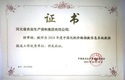 集團(tuán)公司榮獲2019年度中國(guó)化肥價(jià)格指數(shù)信息系統(tǒng)數(shù)據(jù)報(bào)送工作優(yōu)秀單位