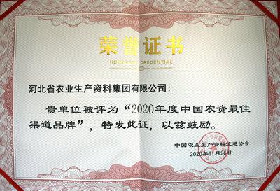 集團(tuán)公司榮獲“2020年度中國農(nóng)資最佳渠道品牌”稱號