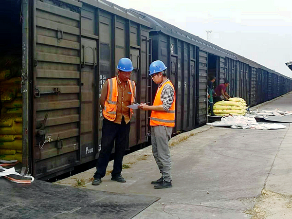 滄州分公司在車站接卸化肥